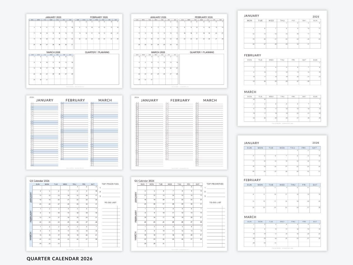 These Quarter 1 planner templates are designed to help you organize goals, schedules, and priorities across January, February, and March 2026 in a single, easy-to-use layout.
